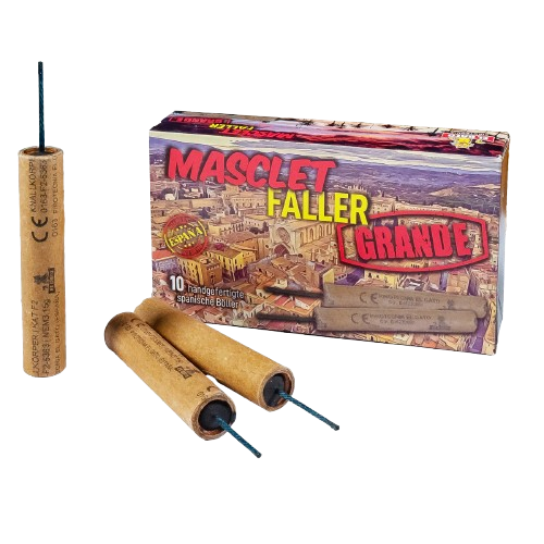 Die Maslcet Faller Grande von El Gato werden handwerklich in Spanien hergestellt. Dabei wird sauberstes europäisches Schwarzpulver in perfekte Hülsen penibel verdämmt. Masclet Faller Grande ist original spanische Knallware von El Gato mit 3,15 Gramm NEM pro Stück! 10 Stück je Packung.